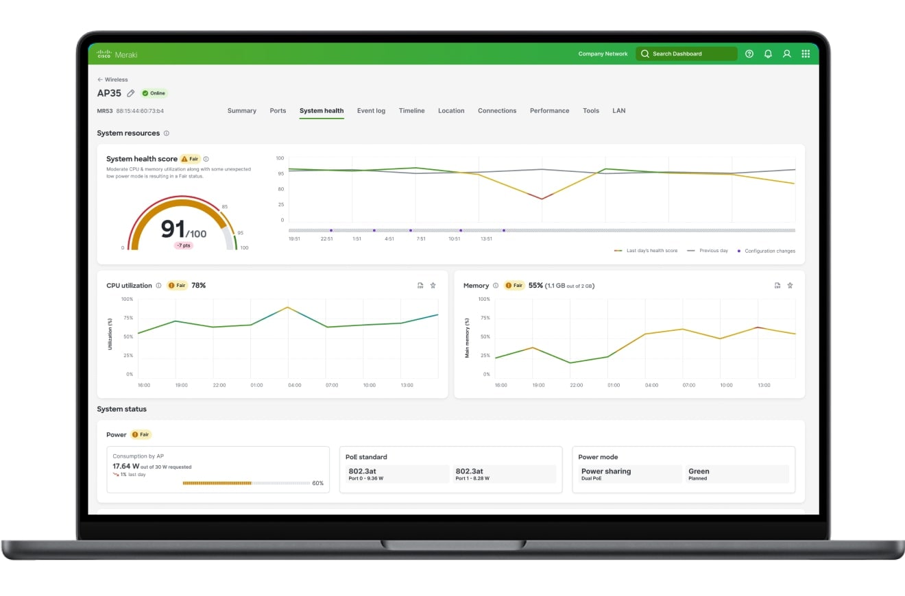 Are you ready to get insights across your network, see historical trends, and instantly identify and address problem areas? Meraki Assurance Overview uses a proprietary scoring framework to measure and track network performance for end users.